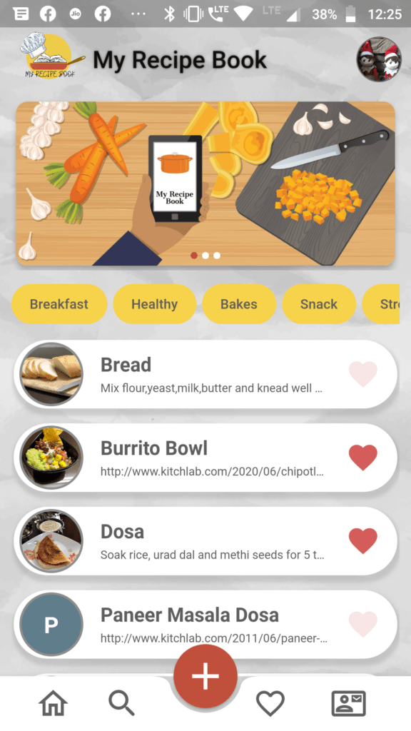- Click on the heart icon to view the recipes that you marked as favourite.